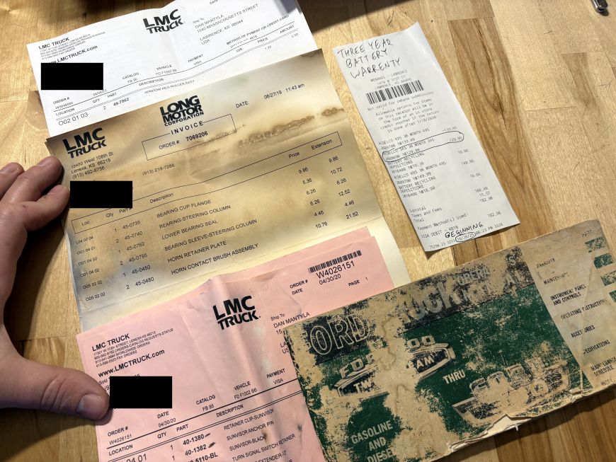 The front brakes were just replaced professionally and still under warranty. I've also recently replaced the battery, starter, turn signal switch, window channels, headliner, and much more. Previous owner replaced the windshield, exhaust system, steering column coupler, side mirrors, and more. The headliner was also added about a year ago. It's just a tapestry but is not glued in, if it doesn't suite you.