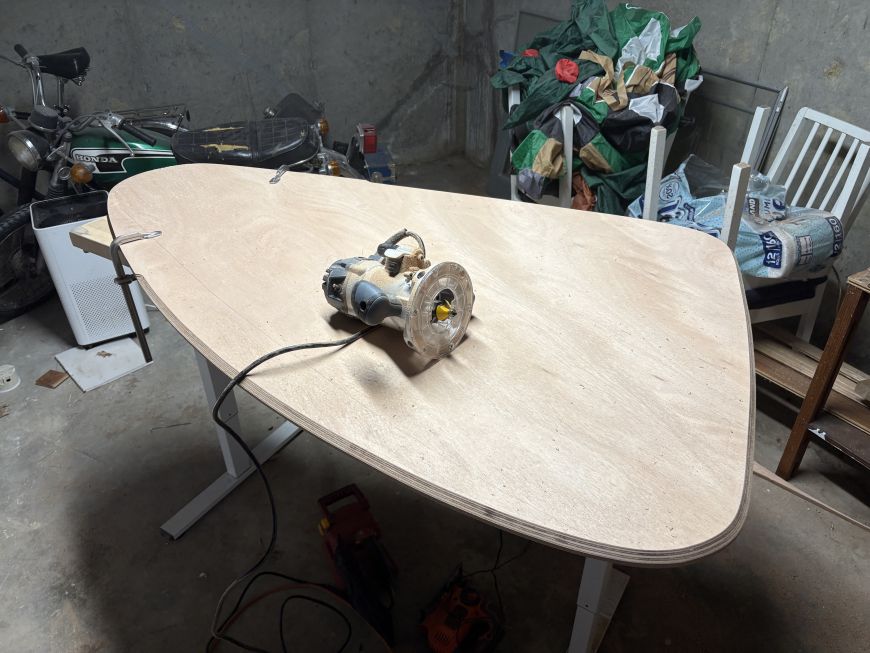 Here's the shape we want for the table, though I did modify it to be more rounded on the hypotenous of the triangle after taking this photo: